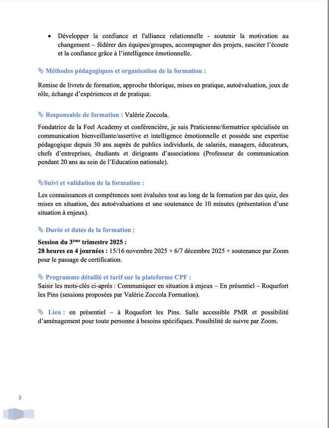 - - Formation : Praticien médiat eur en intelligence émotionnelle du 30/03 au 01/04
